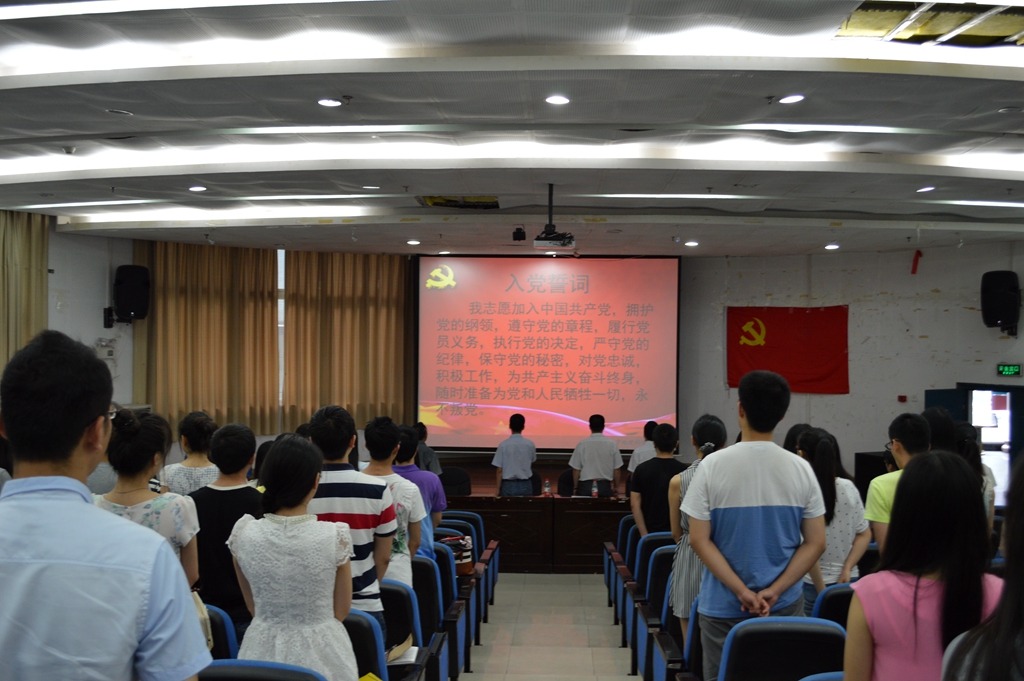 大会伴随着庄严的国歌召开。会上,党委委员、研究生二支部书记耿黎同志对毕业生党员做了深情寄语。本科六支部书记李元庆同志简要回顾了该支部四年来的组织生活会,充分肯定了支部成员在其间的收获与成长,并对毕业生党员提出了殷切的希望。喻尚其书记给毕业生党员最后上了一堂深刻党课,提出了坚守信念、勇于担当、恪守廉洁、追求卓越十六个字的要求和希望。会议表彰了杨志杰、严超等20余名优秀毕业生党员,喻尚其等同志为他们隆重颁奖。会议进行到高潮,喻尚其书记带领全体毕业生党员面对党旗,庄严宣誓:“我志愿加入中国共产党,拥护党的纲领,遵守党的章程,履行党员义务,执行党的决定,……”紧握的右拳,铿锵的语调,坚定的目光,一时间,把现场气氛拉回到了每个党员当初的入党仪式上,令参会人员热血沸腾,感慨良多。