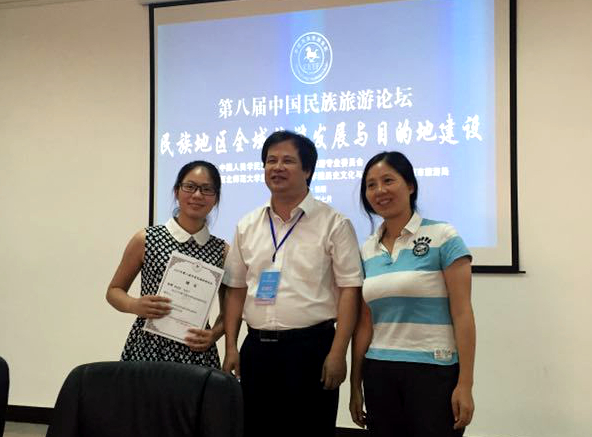7月16日至18日,第八届中国民族旅游论坛在西北师范大学举办。我院人文地理专业研究生向雨川、曹翔在学院人文地理与城乡规划系主任、西南大学旅游研究所所长杨晓教授带领下参加论坛并作主题研究报告,分获论坛优秀论文一、二等奖。
