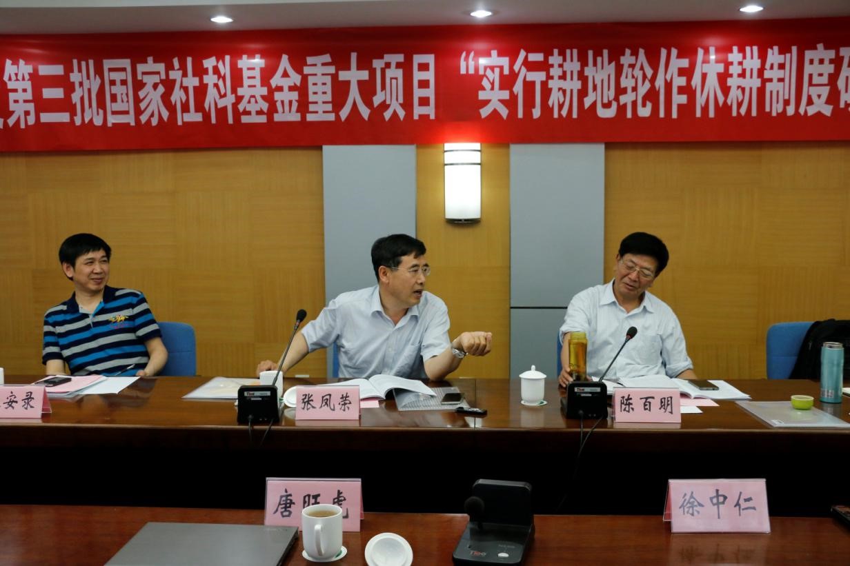 专家们认为,“耕地轮作休耕制度”被列为国家社科基金重大项目,再次体现了党和国家对耕地保护、耕地利用的高度关注。与会专家对项目的前期工作给予了充分肯定,并就进一步完善和深化课题研究提出了建设性意见:一是,课题组前期已对国内外成功案例和政策措施已经做了大量的梳理和对比分析,建议在现有研究基础上形成成果要报,报送国家社科办;二是,按照“有限目标”的原则,建议今后研究进一步聚焦耕地资源粮食生产的潜力测算问题、粮食进口的可持续性评估、粮食安全风险评估、休耕农户补偿问题,以及十三五期间我国粮食主产区以及地下水漏斗区、重金属污染区、生态严重退化区等三个不同类型区耕地的休耕总量等等;三是,充分利用重大项目的契机,加强学科建设,注重团队和人才的培养。