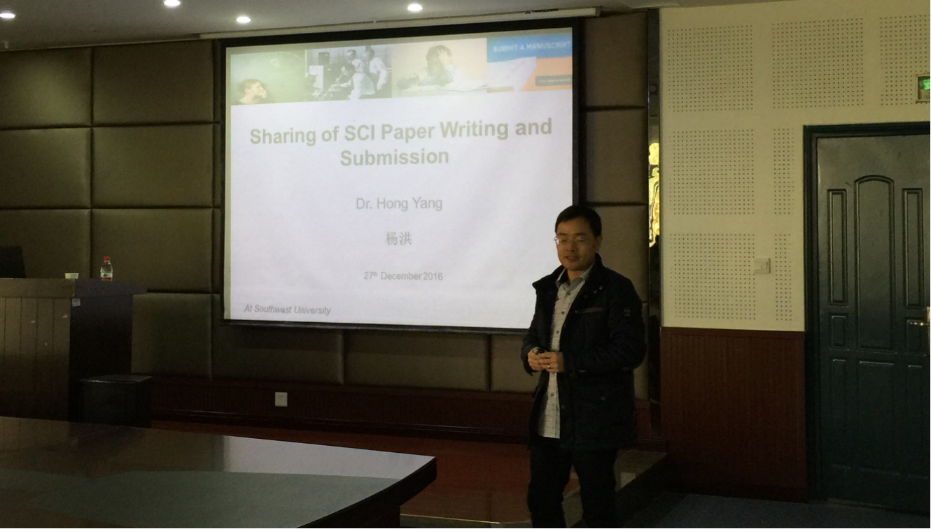 12月27-28日,挪威奥斯陆大学研究员、西南大学外聘教授杨洪博士进行了SCI论文的写作系列研讨会,研讨会分三个阶段,分别为大会报告、论文写作讲习班、论文修改研讨会。研讨会由学院副院长马明国教授主持,有青年教师,有博士、硕士研究生参加。