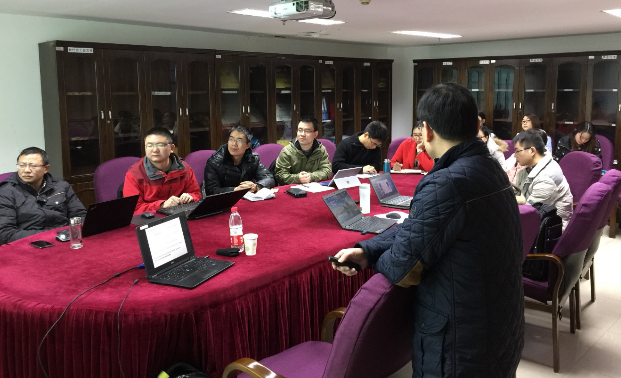 第二阶段写作讲习班在216会议室进行,准备投稿的青年教师、博士、部分研究生等20人参加,杨洪博士对论文的拟题、论文写作、选择期刊投稿、审稿等进行了深入剖析,并结合具体的例子进行说明。第三阶段论文修改研讨会,在216会议室杨洪博士分享了Endnote等文献管理软件的使用经验,并对学院准备投稿的SCI论文进行修改演示。