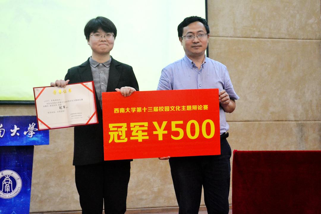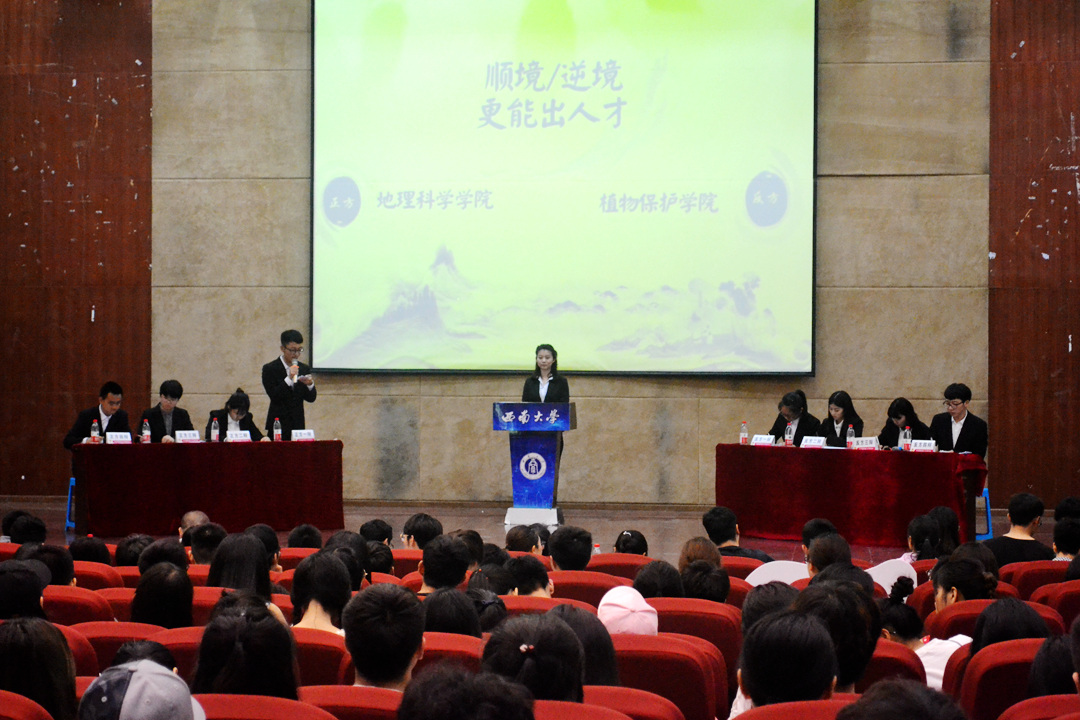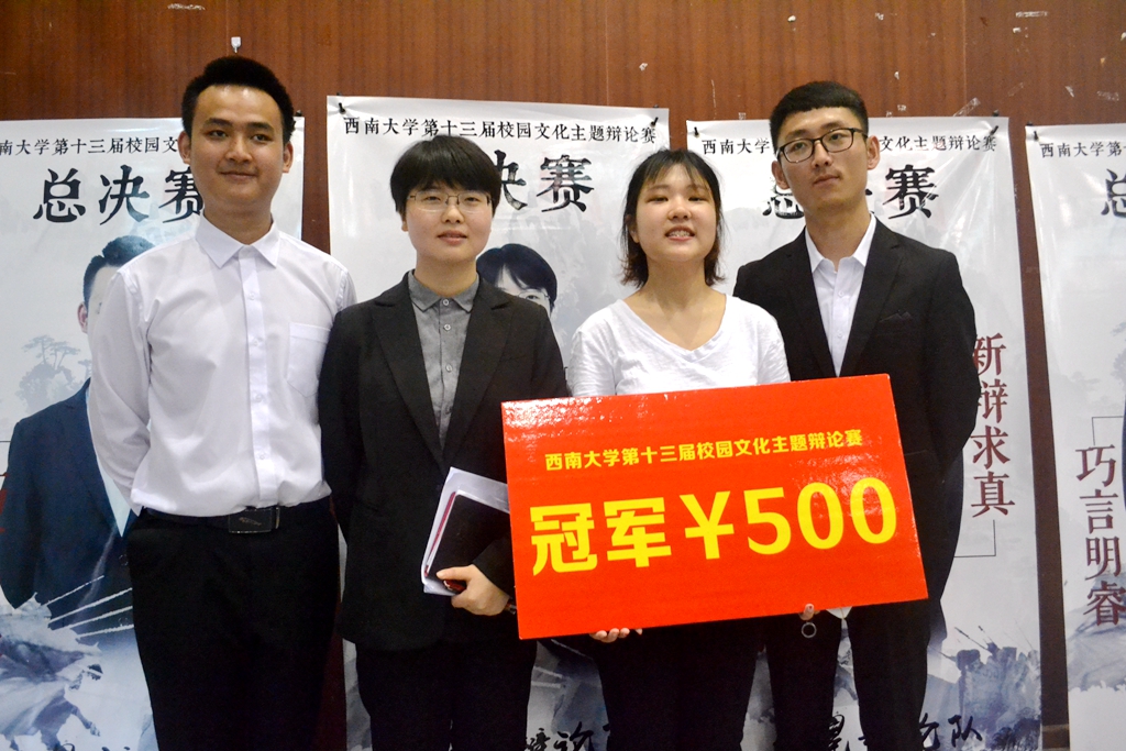 5月20日下午,由共青团西南大学委员会、西南大学学生委员会主办的西南大学第十三届校园文化主题辩论赛决赛在圆顶一楼报告厅举行。地理科学学院北冕辩论队经初赛、复赛、半决赛等层层比拼挺入决赛,并最终获比赛总冠军。