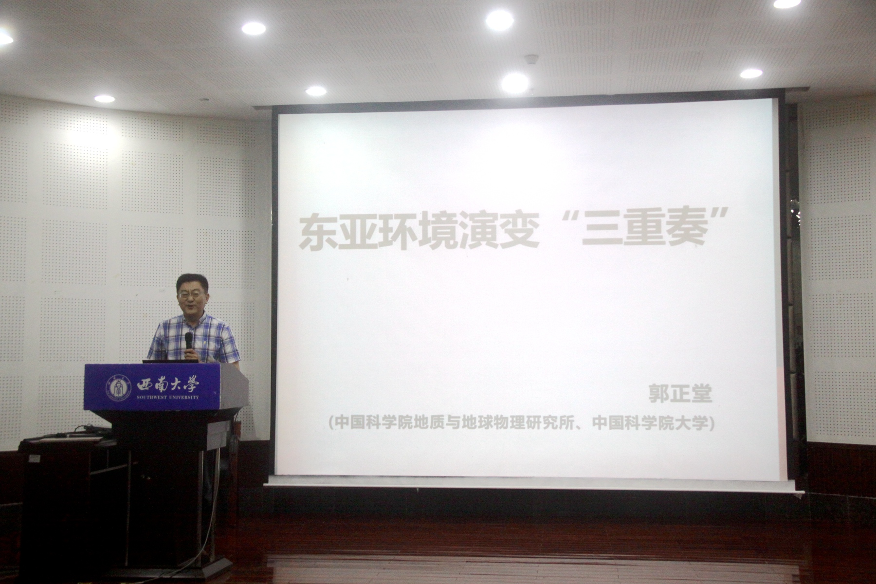 5月27日,中国科学院院士、中国科学院大学副校长郭正堂研究员、西安交通大学全球环境变化研究院程海教授应邀来学院作报告。报告会在学院101报告厅举行,袁道先院士、学院党委书记喻尚其、院长杨庆媛出席报告会。
